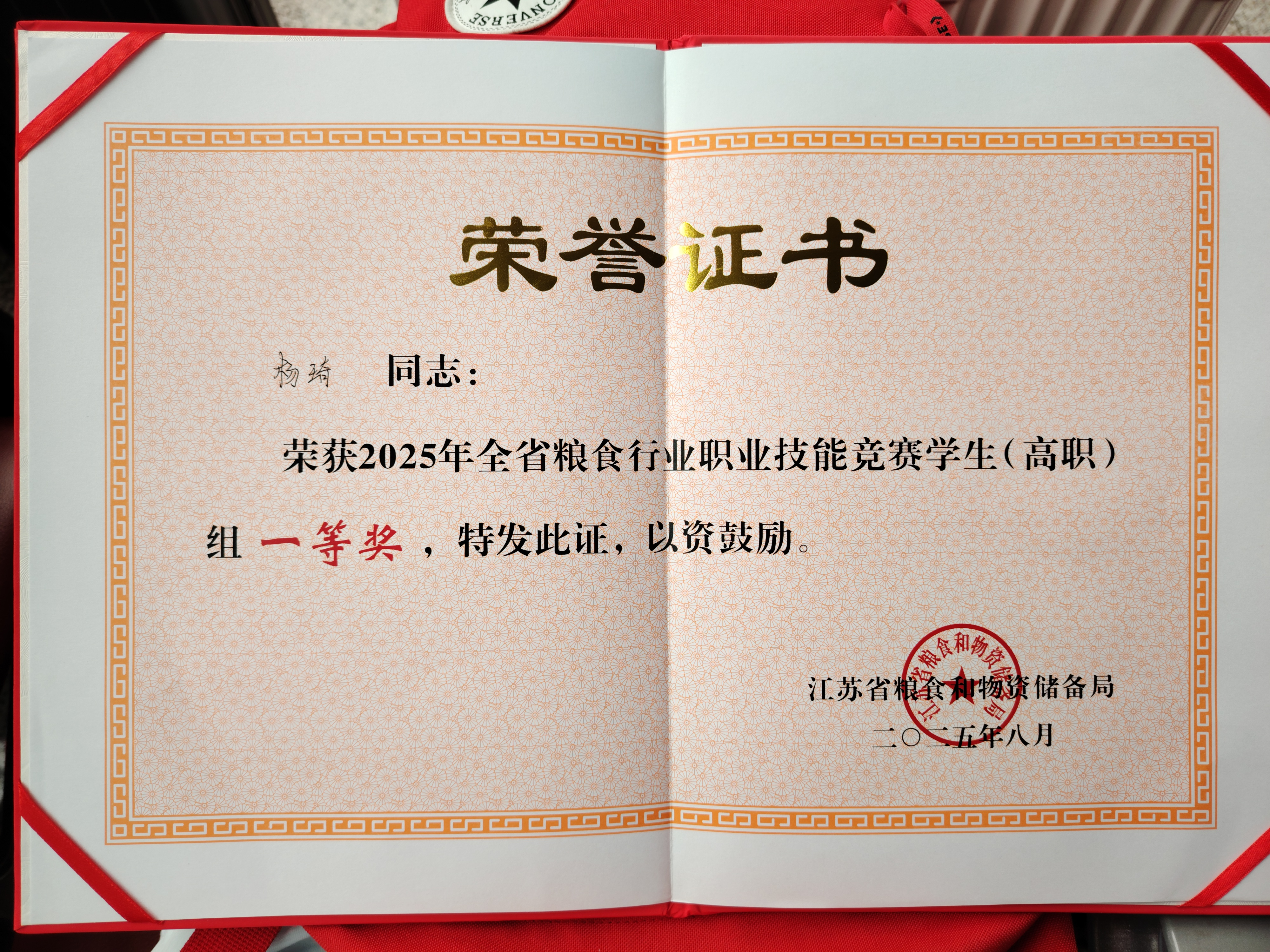 此项比赛是全省粮食行业最高规格比赛,每三年举办一次。经过两天的理论知识和操作技能角逐,粮食与食品药品学院粮食工程技术与管理专业2024级学生杨琦获得农产品食品检验员工种学生组个人第一名一等奖,王雨洁获得农产品食品检验员工种学生组个人优胜奖,张焱获得(粮油)仓储管理员工种学生组个人优胜奖。