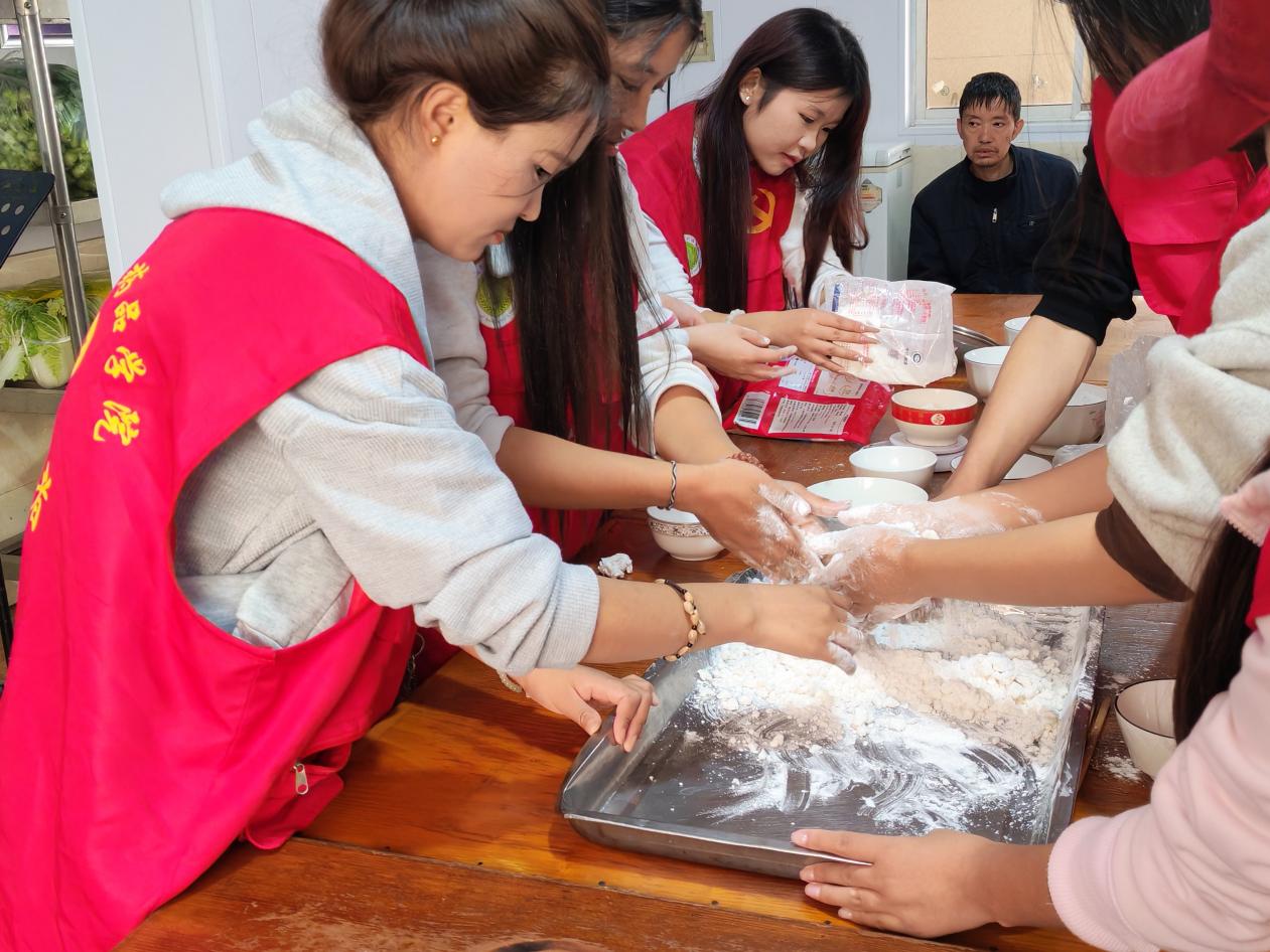 志愿者们带去米面油等慰问品。最具节日氛围的当属烘焙社志愿者与老人们共同制作重阳糕的环节。在养老院的活动室里,志愿者们早已将面粉、豆沙、红枣等制作重阳糕的材料摆放整齐。还与老人共同制作重阳糕,手把手指导揉面、塑形,共享香甜成果。此外,志愿者们或为老人读报讲养生知识,或陪老人下棋聊天,还主动打扫卫生、整理房间。这次活动既让老人们感受到了温暖,同时也让学生们践行了尊老敬老的传统美德。