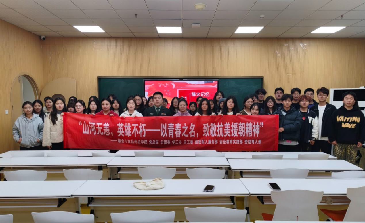 为深刻缅怀抗美援朝先烈,传承伟大的抗美援朝精神,引导 学生树立坚定的理想信念,增强时代责任感与使命感,10 月29日晚,粮食与食品药品学院在五育融合发展中心成功举办退役大学生分享会活动。粮食学院辅导员汤韵慈、退役学生高宇翔和40名25级同学参与本次活动。