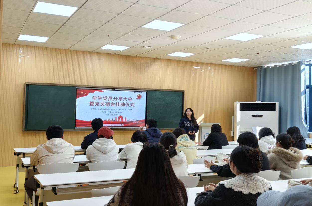 为深入推进“一站式”学生社区建设,充分发挥学生党员、入党积极分子及优秀学生干部的示范引领作用,10月23日下午,粮食与食品药品学院在大学生五育融合中心举办“建文明寝室,亮党员旗帜”模范党员宿舍挂牌仪式。学院学生党支部书记、驻站辅导员汤新元老师及全体学生党员、入党积极分子参加仪式。