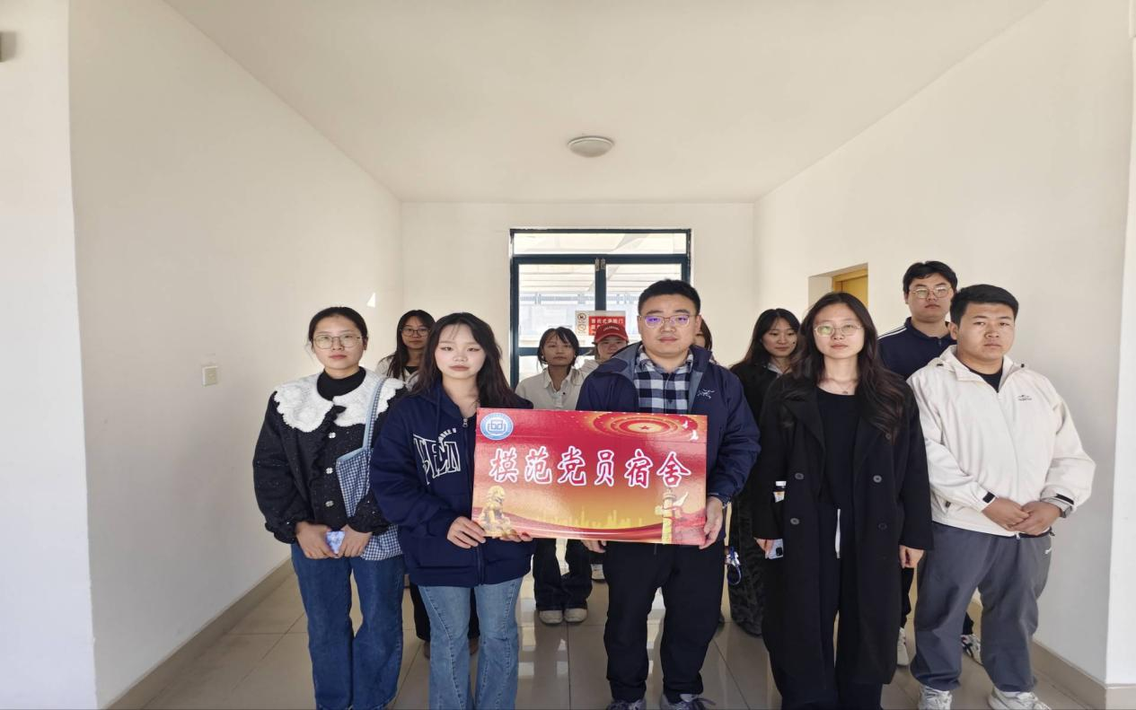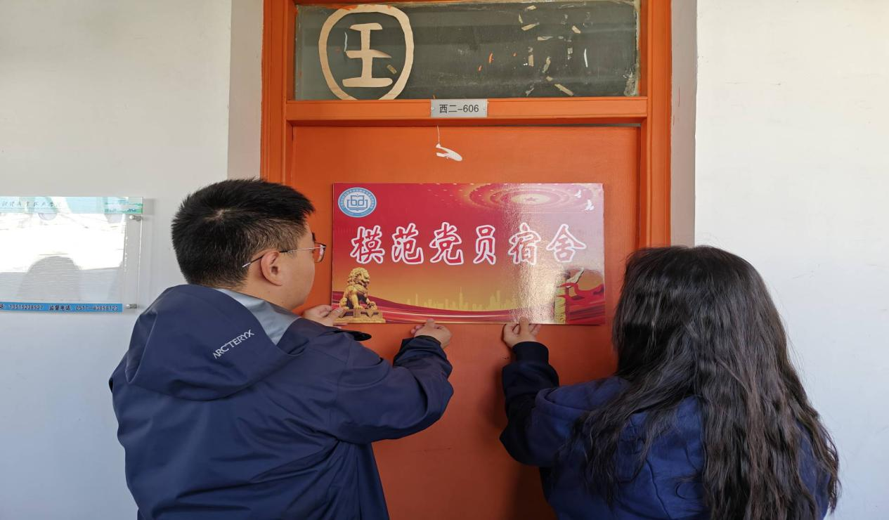 挂牌启动仪式结束后,汤新元老师来到学生宿舍走访,亲自为模范党员宿舍挂牌。他激励同学们要时刻以党员的标准严格要求自己,在文明宿舍创建、学风建设、安全教育等方面亮身份、作表率,真正把“一名党员、一面旗帜”落到实处。