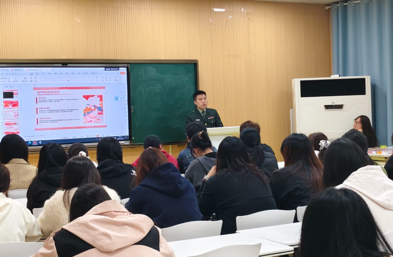 在互动提问环节,25级新生们积极踊跃,围绕大学生入伍的报名流程、军营生活对学业的影响、退伍后如何快速适应校园生活等问题展开咨询。高宇翔同学结合自身经历,耐心细致地逐一解答,并结合抗美援朝精神鼓励有入伍意向的同学选择穿上军装,像先烈们一样,不忘初心、坚守信仰,把青春奉献给更有意义的事业。汤韵慈老师最后补充说明了学院对入伍学生的政策支持,为新生们提供了清晰的指引。
