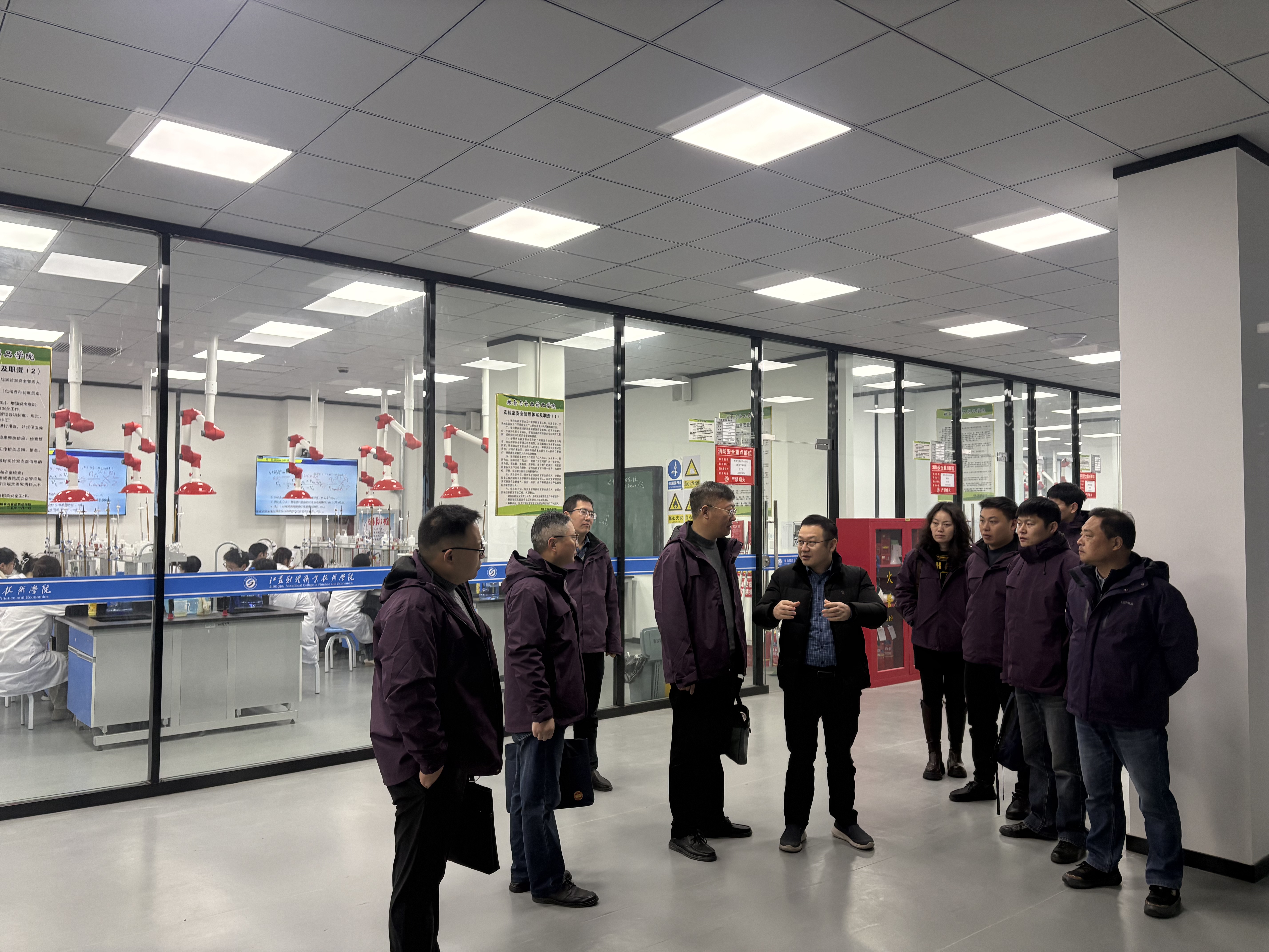 会议开始前,田林双、吴存兵带领来访人员参观江苏省粮油技能人才培训基地、学校智能制造实训中心和学院实验实训室。