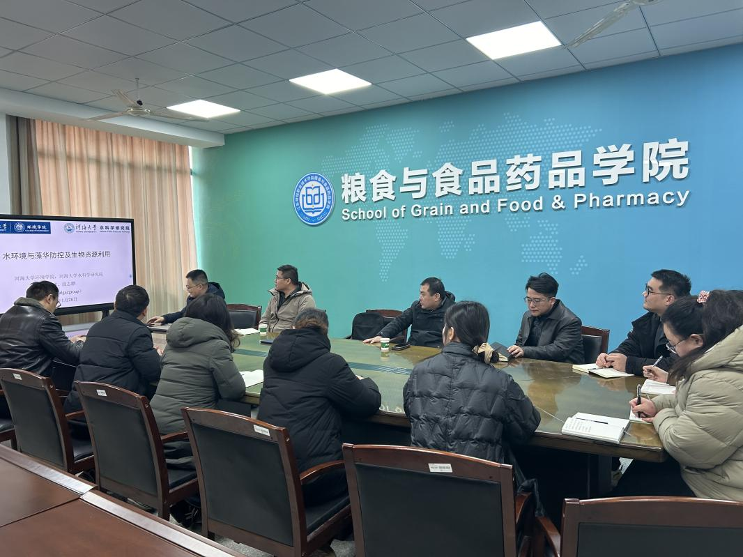 2026 年 1 月 28 日,河海大学环境学院谭啸教授团队一行 4 人莅临我院,围绕水环境与藻资源利用等问题,开展学术交流与合作洽谈。粮食与食品药品学院党总支书记浦海涛、院长田林双、副院长吴存兵及多名教师参加会议,会议由田林双主持。