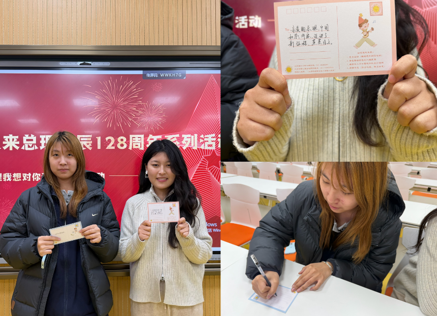 活动核心环节,同学们怀着无比崇敬的心情,参与“周总理,我想对您说”明信片书写活动。大家凝神聚力、提笔抒怀,将对周恩来总理的深切缅怀、无限敬仰,以及作为食品专业学子的责任与担当,化作一句句真挚的话语、一段段赤诚的告白,书写在明信片上。有的同学表达了传承伟人精神、立志勤学笃行的决心,有的同学立下坚守食品初心、守护群众“舌尖上的安全”的誓言,每一笔都饱含深情,每一字都凝聚担当,充分展现了新时代食品专业学子的青春风貌与理想追求。