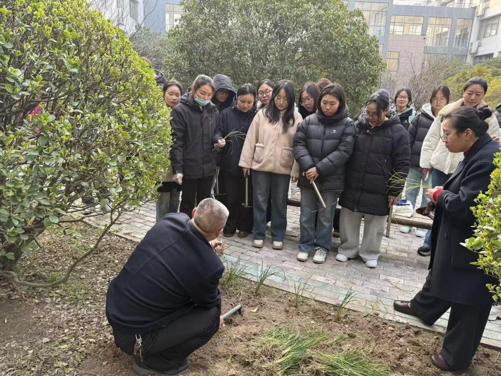活动现场,闾老师率先示范麦冬种植技巧与要点,细致讲解种苗扶正、覆土压实及后期养护等内容,还手把手指导同学们规范操作,让大家掌握了实用的绿化养护知识。同学们分工协作、配合默契,认真完成挖坑、放苗、培土、压实等每一个步骤,充分展现出热爱劳动、团结协作的良好风貌。师生同心植绿,勾勒出鲜活的校园画面,一排排麦冬苗顺利种植,为春日校园增添了清新绿意。