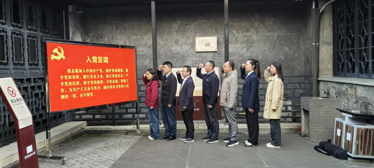 随后,队伍赴新四军黄桥战役纪念馆开展沉浸式学习。在讲解员引导下,党员们依次参观了“黄桥战役的历史背景”“华中抗战新局面的开创”等展区,通过 300 余件珍贵文物、500 余幅历史图片及全景式战斗场景复原,重温了1940年陈毅、粟裕率领新四军以少胜多、大败顽军的辉煌战史。在通如靖泰临时行政委员会旧址(丁家花园),大家驻足于陈毅、粟裕等领导人的办公生活用品前,感悟革命先辈运筹帷幄的战略智慧。现场,学院党总支书记带领全体党员面向党旗庄严宣誓,重温入党誓词,铿锵有力的誓言回荡在纪念馆上空,彰显了新时代粮食人的忠诚担当。