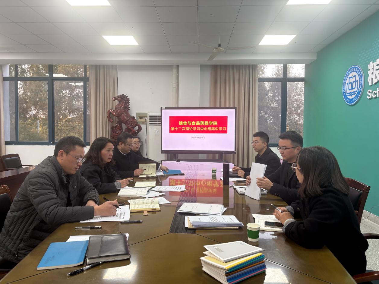 11月19日,粮食与食品药品学院党总支理论学习中心组在诚行楼404召开第12次集中学习会,围绕“深刻学习领悟‘两个确立’的决定性意义及习近平新时代中国特色社会主义思想”主题深入研讨。校纪委副书记、纪委办公室主任郑毅、校纪委办公室副主任李加美、智能工程学院党总支副书记赵林林到会巡学旁听并作指导。学院党总支书记浦海涛主持会议、中心组全体成员参加。